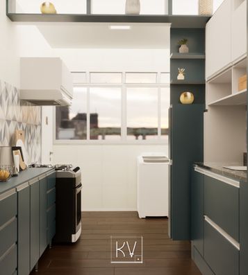 |A marcenaria foi planejada conforme as necessidades dos clientes que necessitavam usar melhor o espaço para itens de uso doméstico e dar um toque de personalidade com as tonalidades: MDF Branco Berneck e MDF Petroleo Matt Guarapes criando um paralelo de superiores em tons claros e inferiores em tons mais escuros.